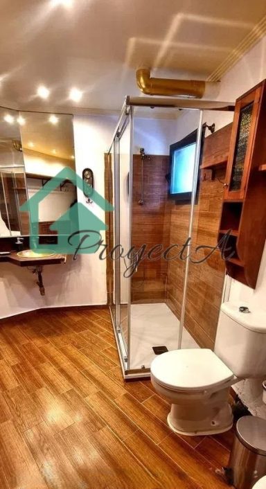1 baño completo con plato de ducha, lavadora y tendedero